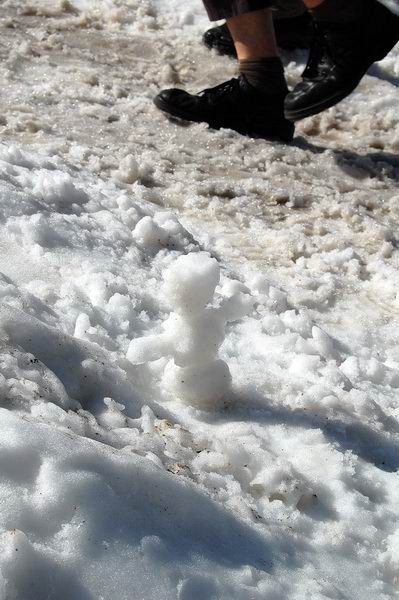 Po dvou kilometrech, když jsme projeli dvěma krátkými tunely, tak na nás čekal sníh. Vrstva sněhu byla docela velká a plocha taky. Všude bylo hodně lidí, kteří si užívali sníh v létě. Dlouho jsme neváhali a hned jsme šli blbnout taky. Simča postavila sněhuláka. Byl to takový malý tréning na zimu. Já jsem se hned sněhem drápal nahoru co nejvýše. Pak jsem to sjel po prdeli dolů. Došlo i na malou kouličkovanou. Pak jsme si šli ještě prohlédnout sněžnou frézu. Odhadem byla stará 40 let.