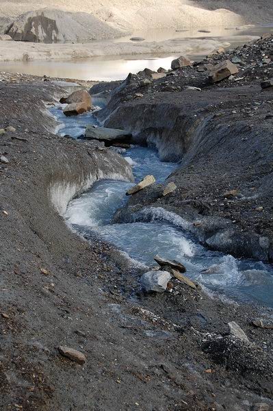 Z výšky to vypadalo jako malé praskliny, ale když jsme přišli blíž, tak byly obrovské. Měli jsem problém je přeskočit. Na kraji ledovce tekla ledovcová řeka. Rozhodli jsme se s Michalem, že ji přejdeme. Taky jsme si na vlastní kůži vyzkoušeli, jak ledová voda v řece je. Myslím si, že kdyby tam člověk spadnul, tak by vydržel maximálně 5 minut. Ve spodní části řeky jsme ji přeskakovali zpět. Museli jsme přeskočit asi 3 metry a převýšení bylo 1,5m. Dopad byl trochu tvrdší, ale zadařilo se. Pak už jsme se začali vracet zpět.