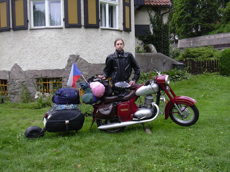 Na hranicích se Švýcarskem si mě vzali stranou. Nevěděl jsem proč. Asi si potřebovali ověřit pas. Mám tam totiž fotku ze 14 let. Do pasu mi dal razítko a přišel se vyptávat na motorku. Vyrazil jsem a aniž bych to věděl, dorazil jsem do Vaduzu. Poznal jsem ho podle muzea, na kterém to bylo napsaný. Zastavil jsem kousek od něj, abych udělal fotku zámku, který stál vysoko nad ním. Když tu přišel starý pán a povídá, že Jawu zná a že je to dobrá značka. U toho si zavzpomínal, když Jawu ještě proháněl sám. Na druhé straně silnice stály dva starší páry na BMW motorkách. Mávaly na mě, tak jsem na ně taky mávnul. Jeden pár se vydal ke mně. Byly to Finové. Říkali mi, že se tu jeden den zdrží a že jeli z Norska trajektem. Pán okamžitě poznal Jawu 250 a povídal mi, že jeho první motorka byla Jawa 150 ccm. To bylo pro mě opravdu překvapení. Popřáli jsme si šťastnou cestu a razili jsme každý svým směrem.