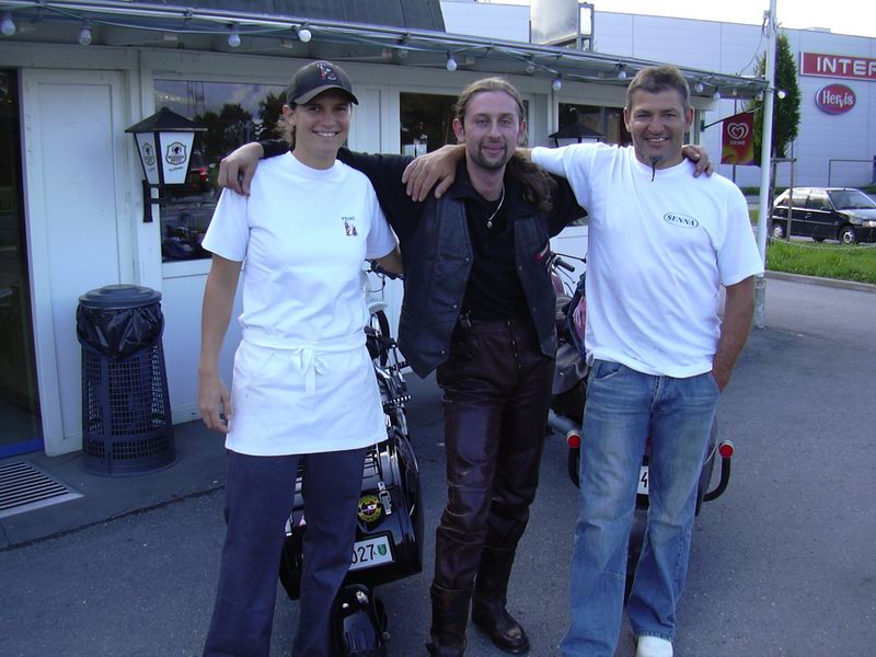 Tradičně byla opět bábovka. Chvílema jsem koukal ven, jestli se počasí náhodou nevybere. Jak tak stojím před tou zastávkou, přišel ke mně kluk (nejspíš hokejista), měl velkou tašku na kolečkách a v ruce držel hokejky a ptá se mě, odkud jsem a jestli čekám na to, až to přejde. Povídám mu, že jsem z Čech a že jedu do Španělska. Pak se mě ještě zeptal, jestli tam budu spát, tak jsem řekl, že možná ano. Zaujala ho Kristýna. Myslel si, že se Jawa vyrábí v Rusku, ale to jsem ho hodně rychle vyvedl z omylu a říkal jsem mu, že se jedná o ryze českou značku.