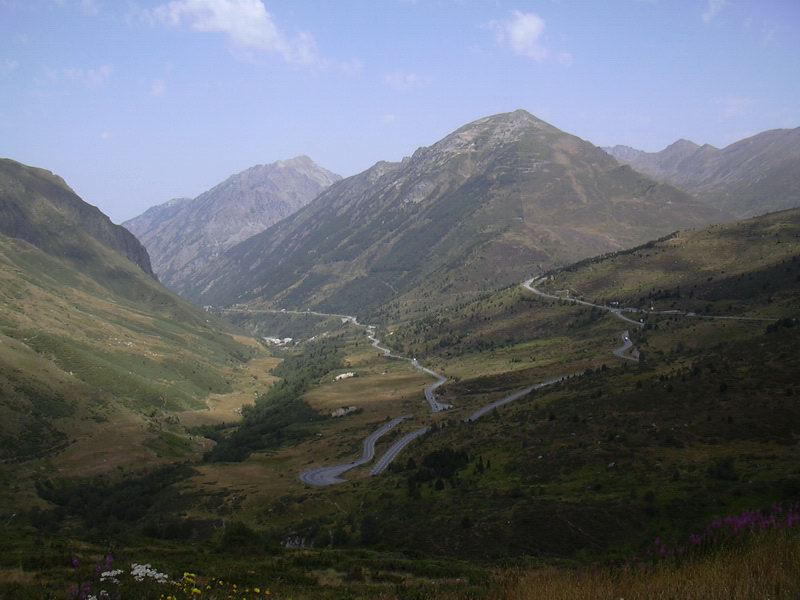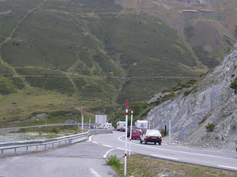 Ten den bylo hrozné teplo. Bylo cca 35°C. Vzduch byl od silnice, tak rozehřátý, že se mi dýchalo, jako měl fén v puse. Sjel jsem do údolí a tam na mě čekal ten největší kopec. Do Andory to bylo ještě 30 km. Pořád jsem jel na dvojku 30 km/h. Motor byl tak rozpálený, že už mašina pomalu nechtěla držet volnoběh. Po cestě jsem potkával odpadlá auta, kterým něco nevydrželo. Když už jsem byl téměř nahoře, tak jsem si mohl vybrat, jestli si cestu zkrátím tunelem nebo pojedu přes úplný vrchol. Zvolil jsem tunel. Sice stál 3 Eura, ale zas tam byl chládek a mašina si trochu odpočinula.
