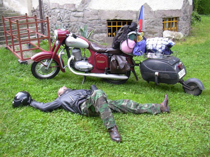 Ještě jsem zapomněl na dvě příhody z Boleslavi. Při příjezdu k Hypernově jsem potkal kolegy motorkáře (kluka s holkou). Pozdravili jsme se a prohodili pár slovo. Ptali se mě kam jedu. Já říkal, že do Španělska, tak je to trochu zaskočilo, ale pak říkali, že se nemá na Jawě co rozbít. Oni povídali, že v neděli odjíždí do Černé hory. Měli Dragstara, ale přesný typ nevím.